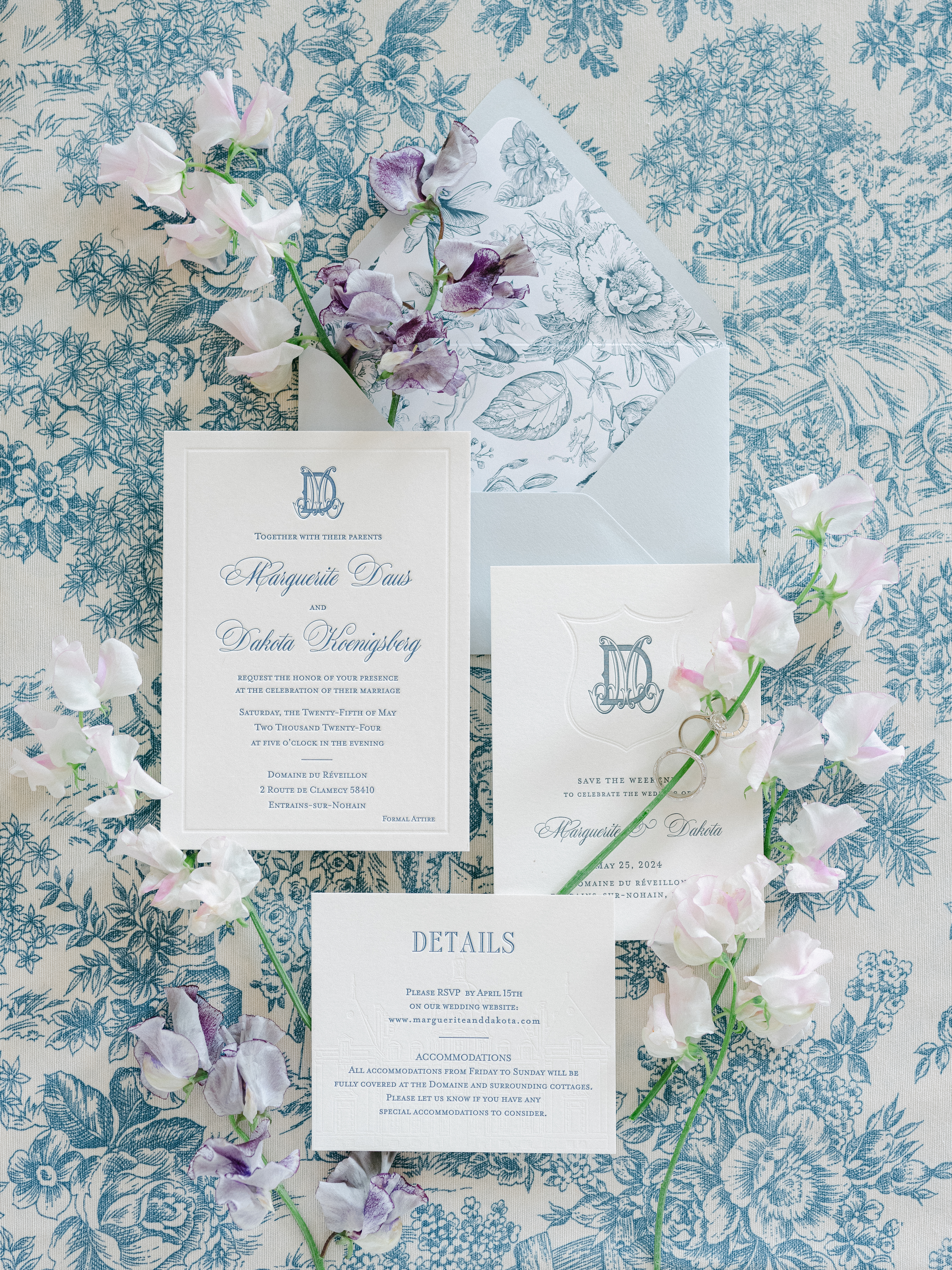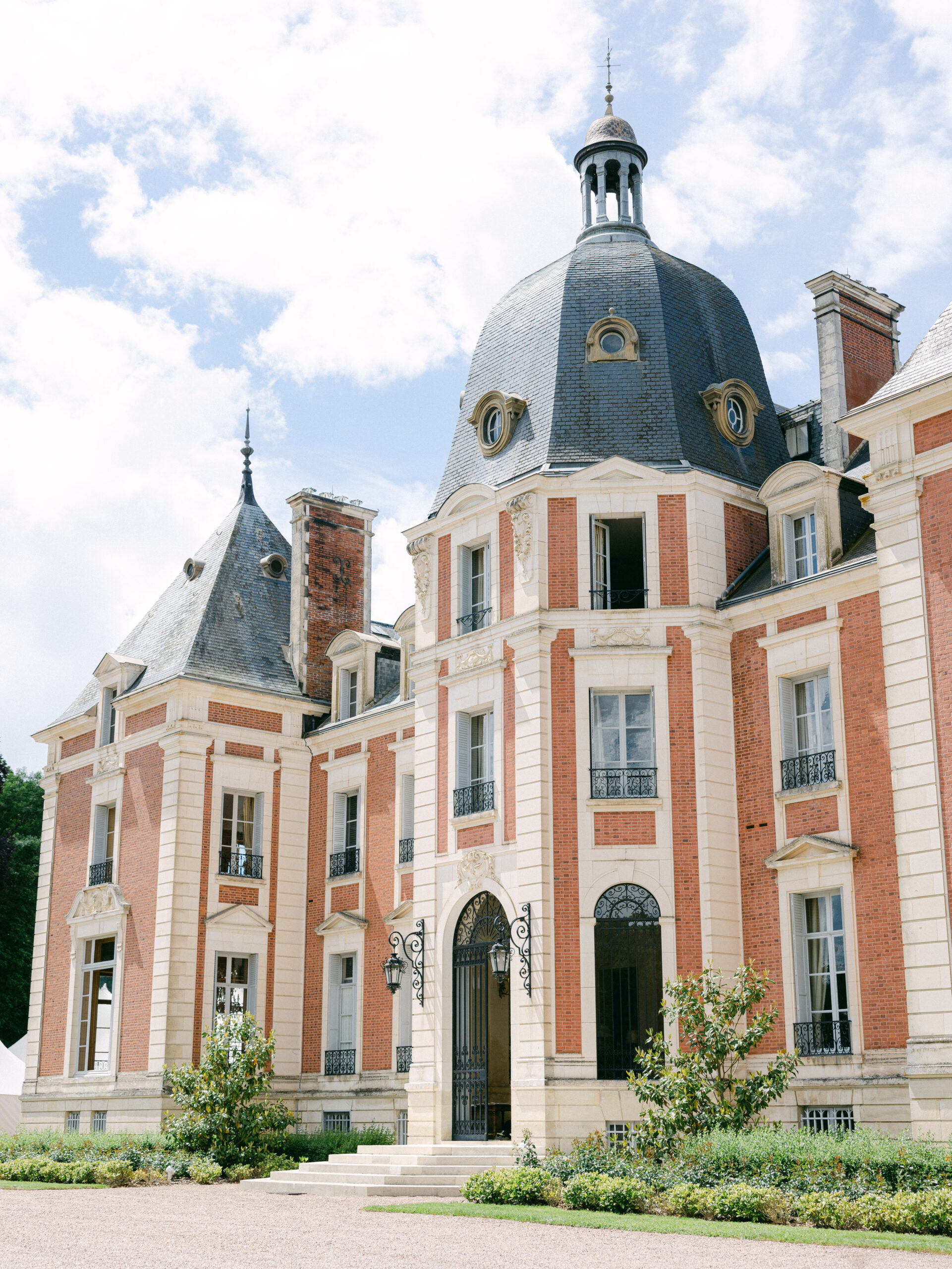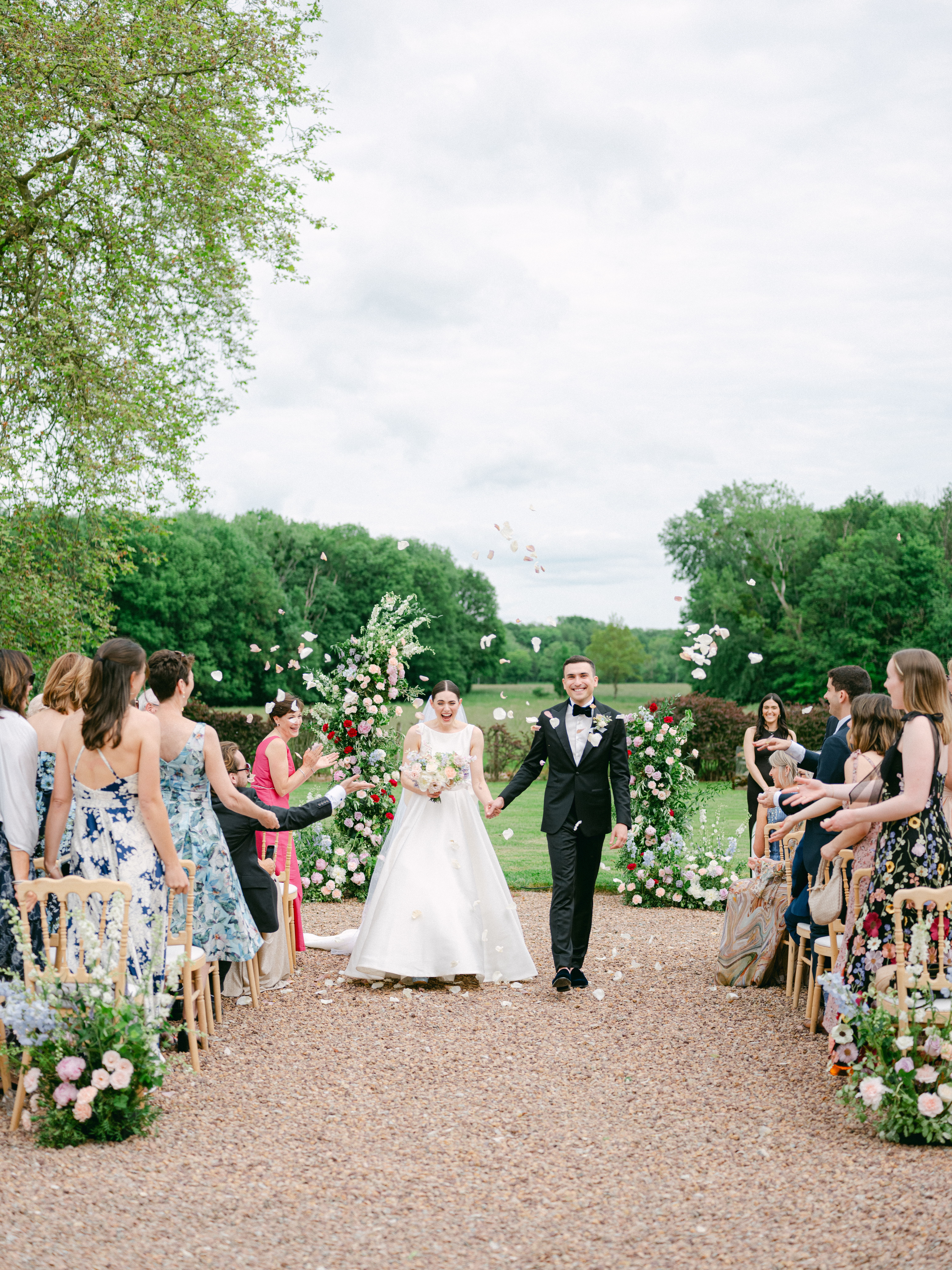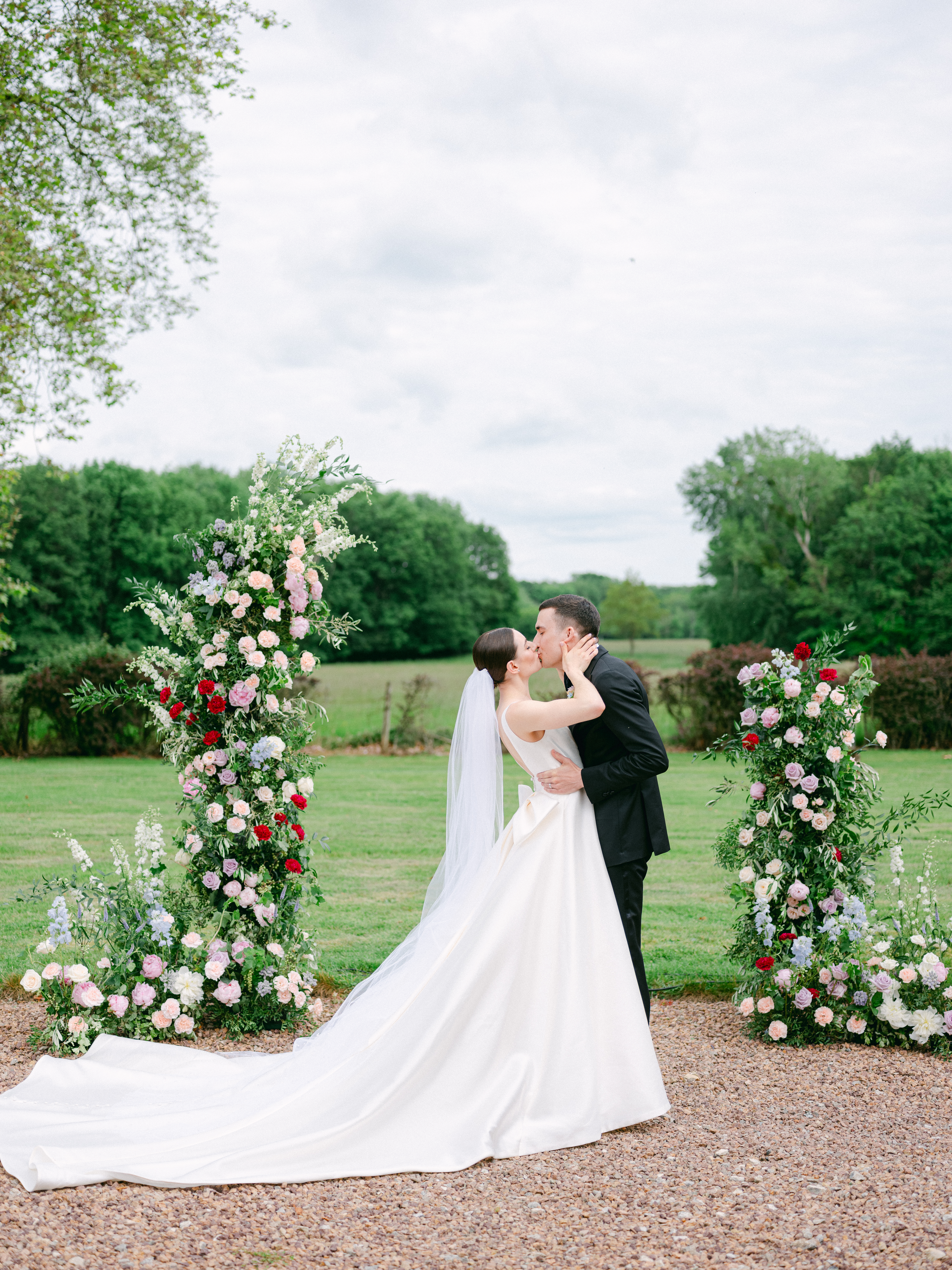Marguerite and Dakota traveled from Denver to celebrate their three-day wedding in Burgundy, set in a beautiful château surrounded by nature and vineyards. Their guests enjoyed a true destination wedding in France, blending historic charm with panoramic countryside views.