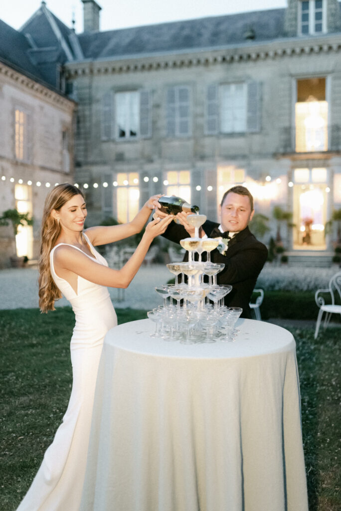 They then traveled to the Champagne region to celebrate their intimate wedding in an 18th-century château, surrounded by their closest loved ones. The historic setting and refined architecture created a warm and elegant atmosphere, perfect for a destination wedding in Champagne, in France.